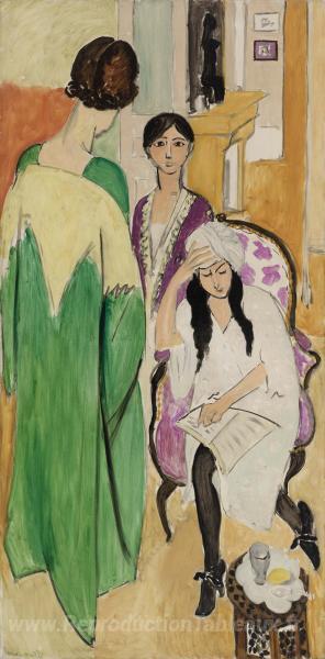 Nous vous proposons une reproduction artisanale sur toile du célèbre tableau 'Les trois sœurs avec une sculpture, panneau de gauche du triptyq' de Henri Matisse, provenant du Musée de la Reproduction.