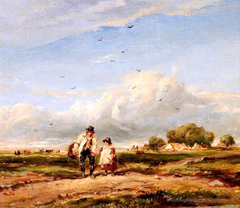 Nous vous proposons une reproduction artisanale sur toile du célèbre tableau 'Les wayfarers' de David Cox, provenant du Musée de la Reproduction.