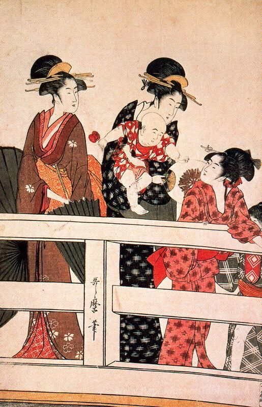 Nous vous proposons une reproduction artisanale sur toile du célèbre tableau 'L'heure du cheval' de Kitagawa Utamaro, provenant du Musée de la Reproduction.