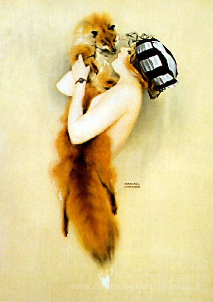 Nous vous proposons une reproduction artisanale sur toile du célèbre tableau 'Lillian Lorraine' de Raphael Kirchner, provenant du Musée de la Reproduction.