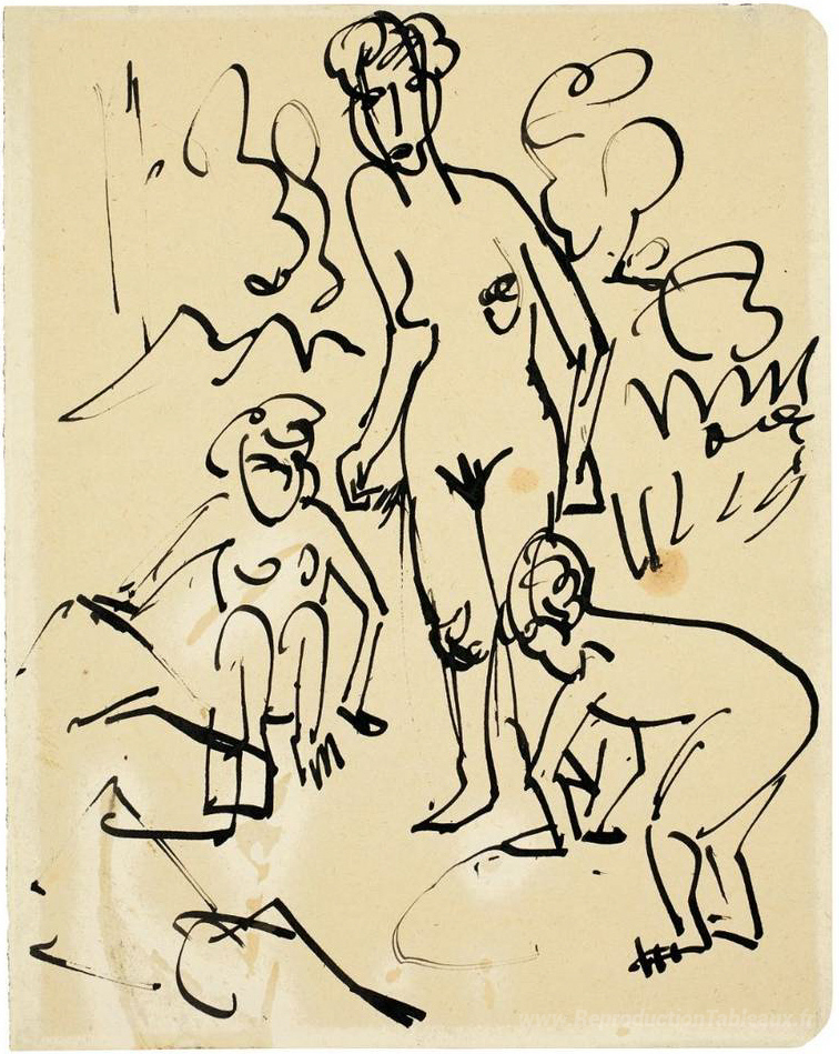 Nous vous proposons une reproduction artisanale sur toile du célèbre tableau 'Mère et enfants' de Ernst Ludwig Kirchner, provenant du Musée de la Reproduction.