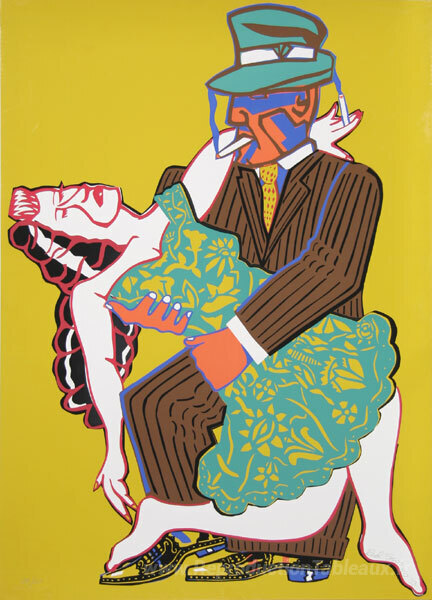 Nous vous proposons une reproduction artisanale sur toile du célèbre tableau 'Mangue mangue' de Red Grooms, provenant du Musée de la Reproduction.