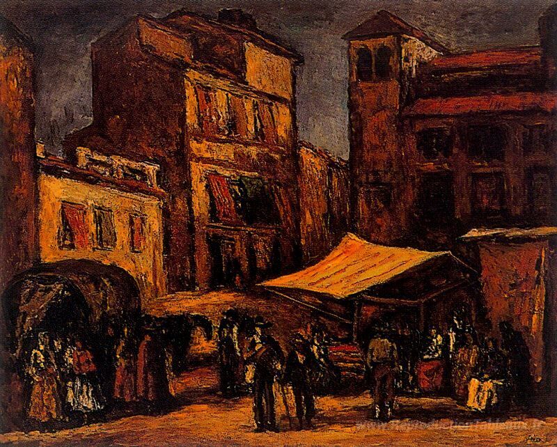 Nous vous proposons une reproduction artisanale sur toile du célèbre tableau 'Marché de Segovia' de Arturo Souto, provenant du Musée de la Reproduction.