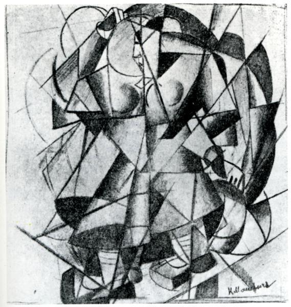 Nous vous proposons une reproduction artisanale sur toile du célèbre tableau 'moissonneuse' de Kazimir Malevich, provenant du Musée de la Reproduction.