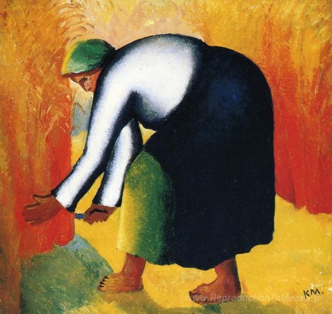 Nous vous proposons une reproduction artisanale sur toile du célèbre tableau 'moissonneuse' de Kazimir Malevich, provenant du Musée de la Reproduction.