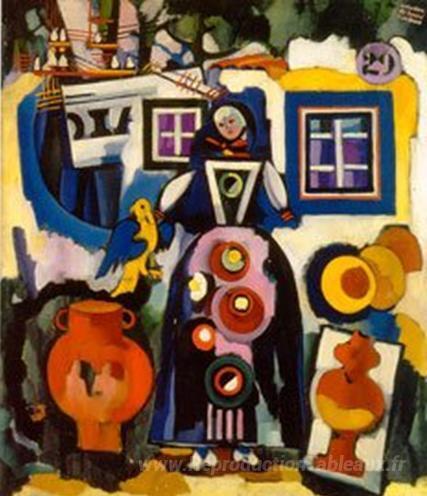 Nous vous proposons une reproduction artisanale sur toile du célèbre tableau 'Oiseau de chanson populaire et Brésil' de Amadeo de Souza-Cardoso, provenant du Musée de la Reproduction.