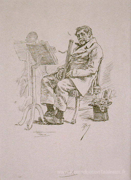 Nous vous proposons une reproduction artisanale sur toile du célèbre tableau 'Père Muck' de Felicien Rops, provenant du Musée de la Reproduction.