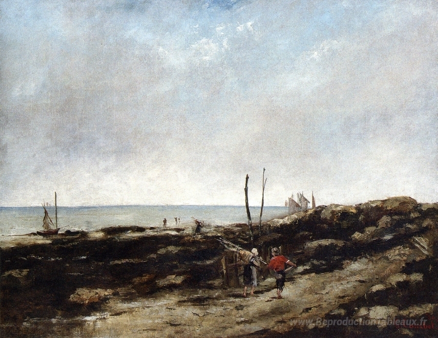 Nous vous proposons une reproduction artisanale sur toile du célèbre tableau 'Pêche à la pêche' de Gustave Courbet, provenant du Musée de la Reproduction.