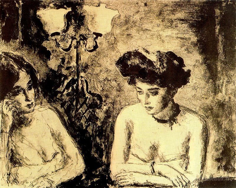 Nous vous proposons une reproduction artisanale sur toile du célèbre tableau 'Parisiens' de Arturo Souto, provenant du Musée de la Reproduction.