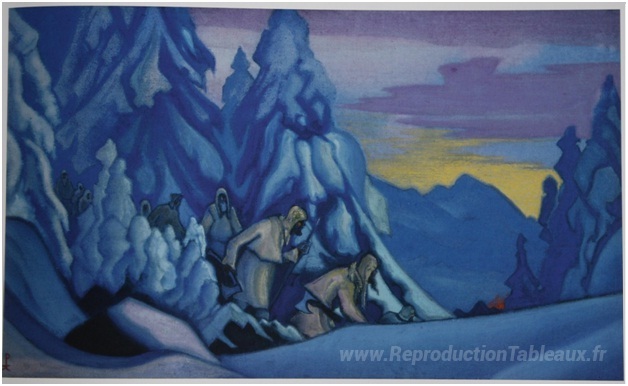 Nous vous proposons une reproduction artisanale sur toile du célèbre tableau 'Partigiani' de Nicholas Roerich, provenant du Musée de la Reproduction.