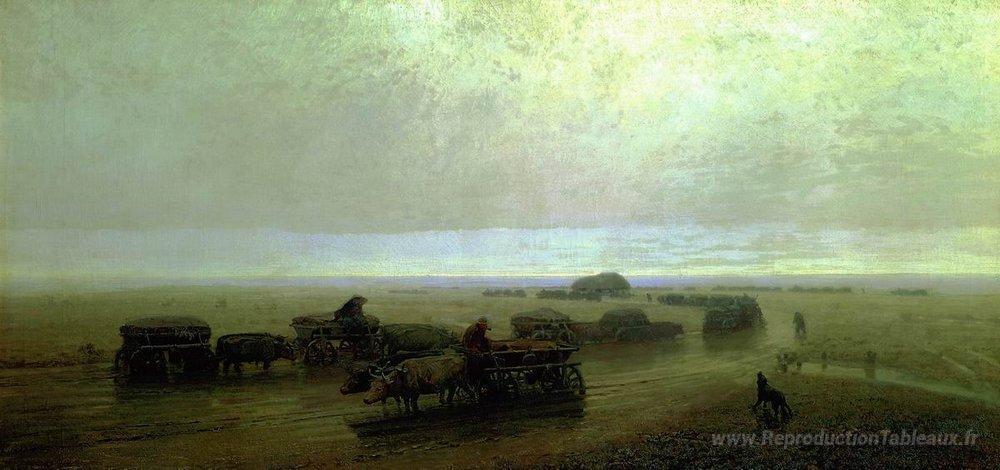 Nous vous proposons une reproduction artisanale sur toile du célèbre tableau 'Path chumaks à Mariupol' de Arkhip Kuindzhi, provenant du Musée de la Reproduction.