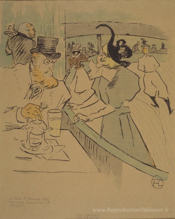 Nous vous proposons une reproduction artisanale sur toile du célèbre tableau 'Patinage' de Henri de Toulouse-Lautrec, provenant du Musée de la Reproduction.