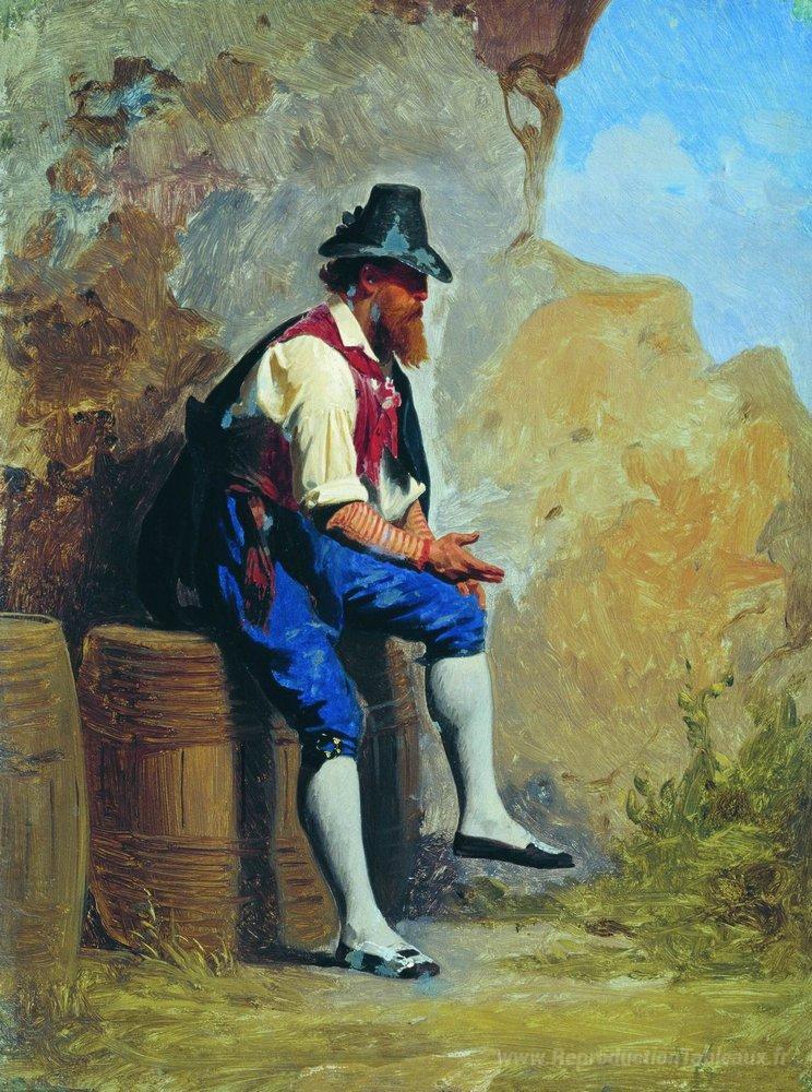 Nous vous proposons une reproduction artisanale sur toile du célèbre tableau 'Paysan italien sur le baril' de Fyodor Bronnikov, provenant du Musée de la Reproduction.
