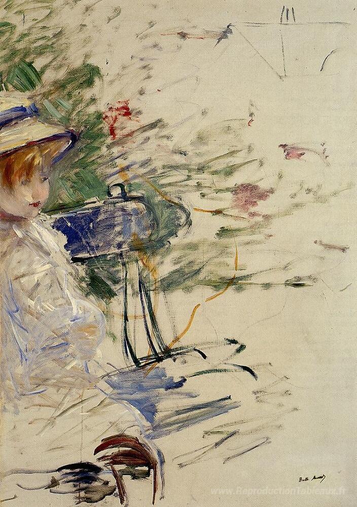 Nous vous proposons une reproduction artisanale sur toile du célèbre tableau 'Petite fille dans un jardin' de Berthe Morisot, provenant du Musée de la Reproduction.