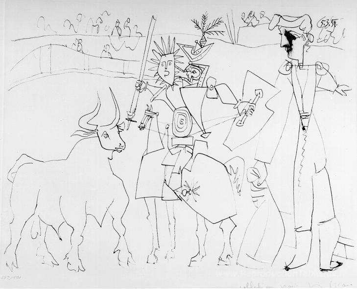 Nous vous proposons une reproduction artisanale sur toile du célèbre tableau 'Picador à cheval sur l'arène' de Pablo Picasso, provenant du Musée de la Reproduction.