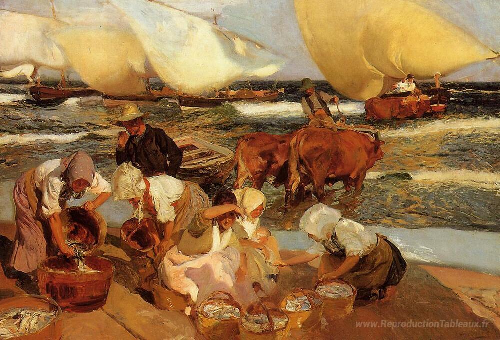Nous vous proposons une reproduction artisanale sur toile du célèbre tableau 'Plage à Valence' de Joaquín Sorolla, provenant du Musée de la Reproduction.