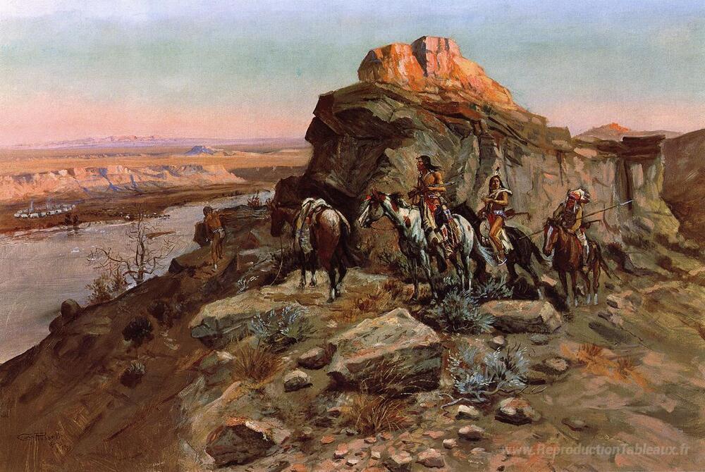 Bienvenue dans notre collection exclusive de peintures à l'huile, où l'art prend vie grâce à des reproductions d'une qualité exceptionnelle. Découvrez l'œuvre captivante de Charles M. Russell, un maestro de la peinture western, dont l'art évoque la majesté des paysages américains et la richesse de la culture indigène. Sa peinture emblématique, Planifier l'attaque, illustre magistralement une scène dynamique, mêlant virtuosité technique et profondeur narrative.