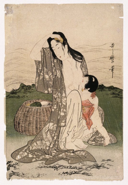 Nous vous proposons une reproduction artisanale sur toile du célèbre tableau 'Plongeurs de perles' de Kitagawa Utamaro, provenant du Musée de la Reproduction.