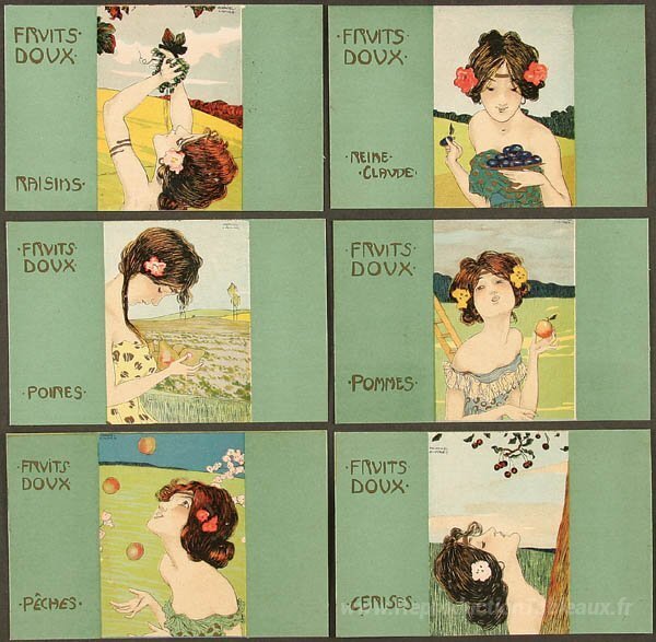 Nous vous proposons une reproduction artisanale sur toile du célèbre tableau 'Pommes, fruits doux' de Raphael Kirchner, provenant du Musée de la Reproduction.