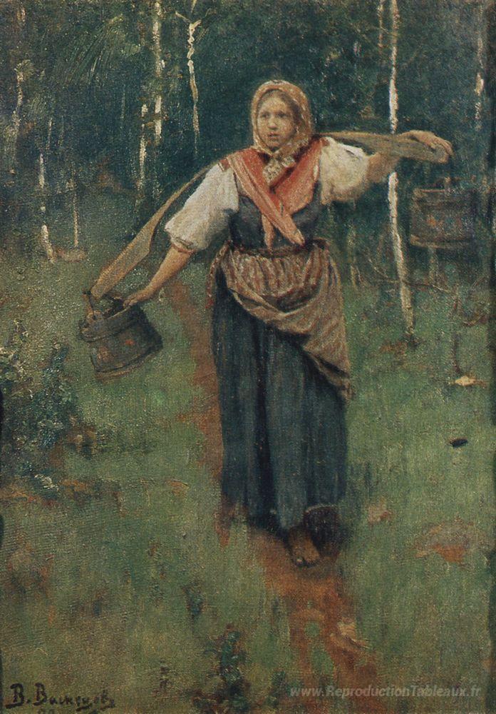 Nous vous proposons une reproduction artisanale sur toile du célèbre tableau 'Pour l'eau' de Viktor Vasnetsov, provenant du Musée de la Reproduction.