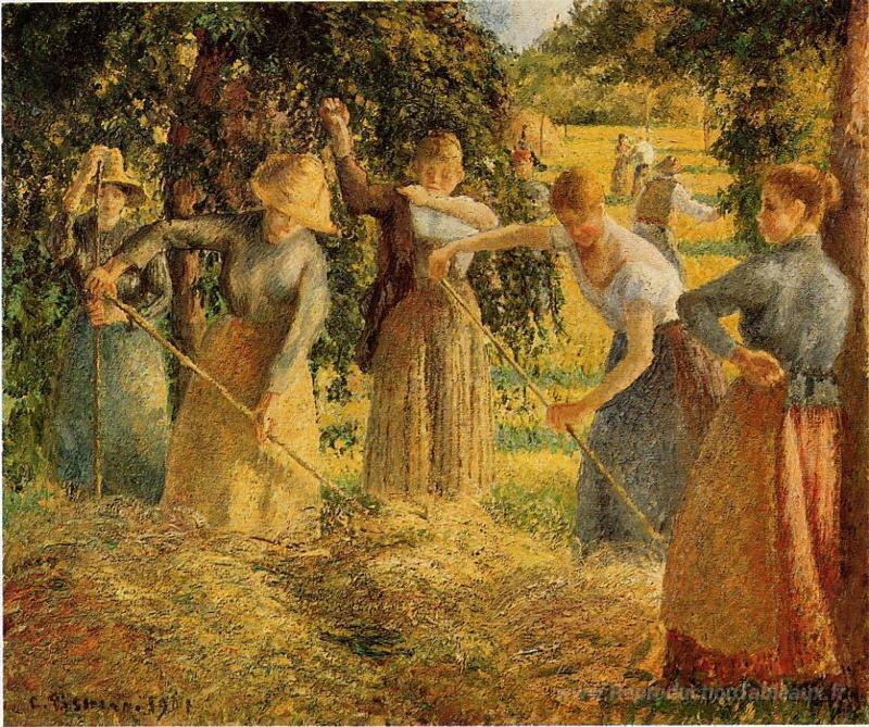 Nous vous proposons une reproduction artisanale sur toile du célèbre tableau 'Récolte à Eragny' de Camille Pissarro, provenant du Musée de la Reproduction.