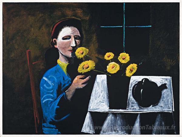 Nous vous proposons une reproduction artisanale sur toile du célèbre tableau 'Réflexions jaunes' de Charles Blackman, provenant du Musée de la Reproduction.