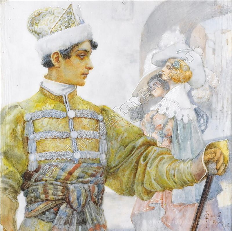Nous vous proposons une reproduction artisanale sur toile du célèbre tableau 'Réunion' de Sergey Solomko, provenant du Musée de la Reproduction.
