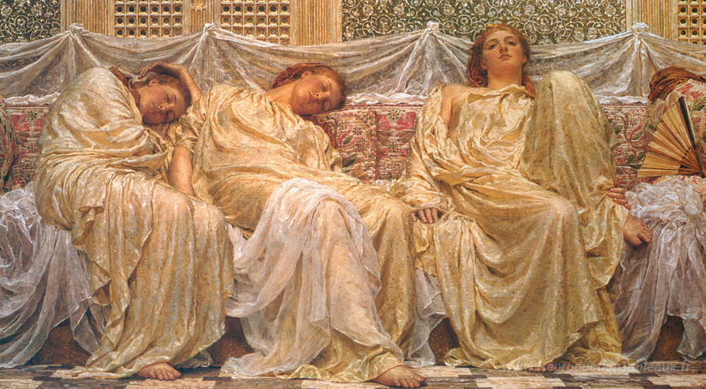 Nous vous proposons une reproduction artisanale sur toile du célèbre tableau 'Rêveurs' de Albert Joseph Moore, provenant du Musée de la Reproduction.