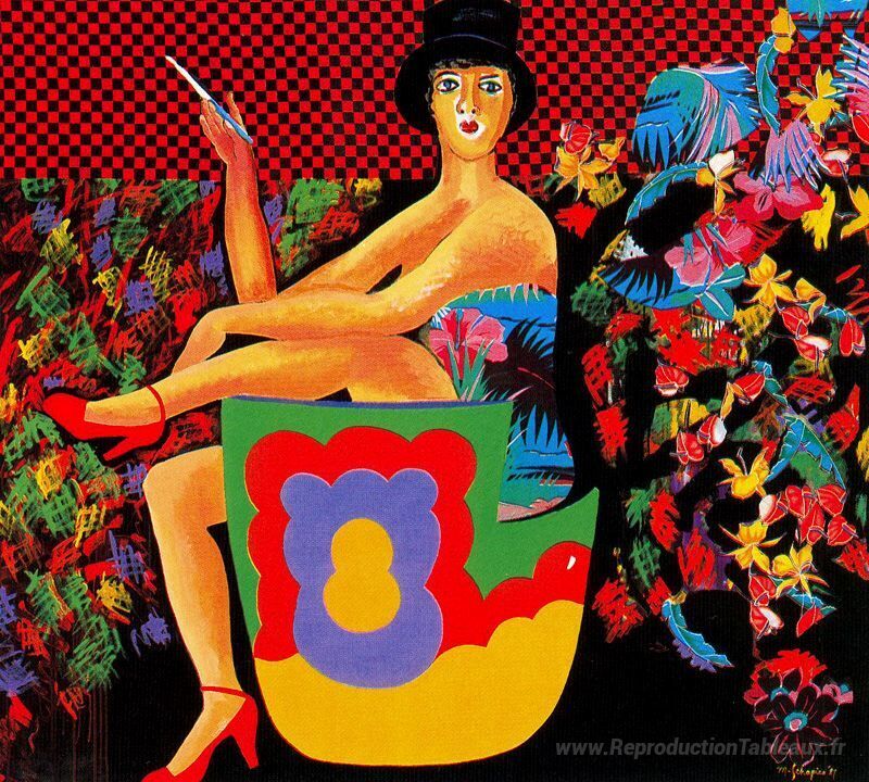 Nous vous proposons une reproduction artisanale sur toile du célèbre tableau 'Rag-time' de Miriam Schapiro, provenant du Musée de la Reproduction.