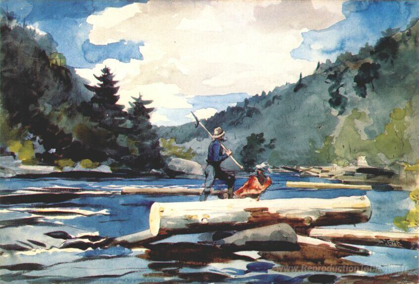 Nous vous proposons une reproduction artisanale sur toile du célèbre tableau 'River Hudson, journalisation' de Winslow Homer, provenant du Musée de la Reproduction.