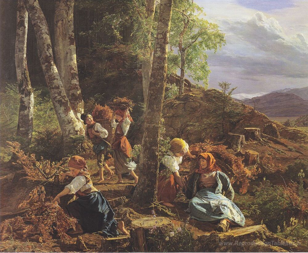 Nous vous proposons une reproduction artisanale sur toile du célèbre tableau 'Rushwood Collectors dans le Wienerwald' de Ferdinand Georg Waldmüller, provenant du Musée de la Reproduction.