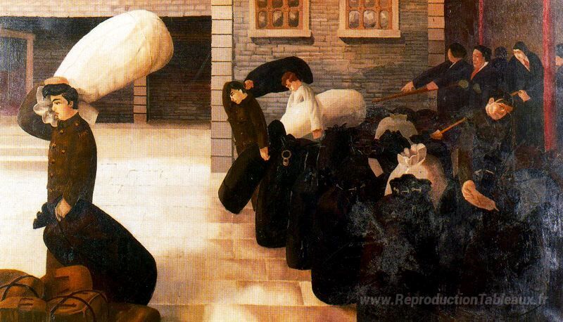 Bienvenue dans notre collection exclusive de peintures à l'huile, où chaque reproduction raconte une histoire empreinte d'émotion et de créativité. Aujourd'hui, nous vous invitons à découvrir l'œuvre captivante de Stanley Spencer, un artiste britannique reconnu pour son approche unique de la représentation picturale. Sa peinture, Sacs de kit de tri et de déplacement, illustre à merveille son style audacieux, mêlant intimisme et monumentalité. Spencer capture avec brio la complexité des émotions humaines et des paysages à travers des coups de pinceau vigoureux et des couleurs vibrantes.