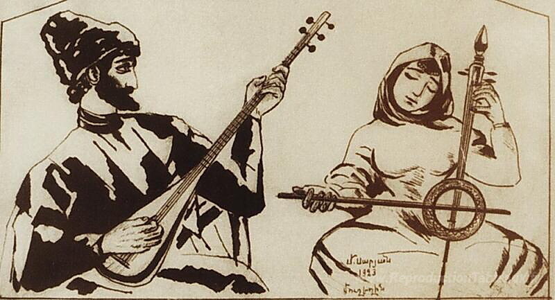 Nous vous proposons une reproduction artisanale sur toile du célèbre tableau 'Sayat Nova' de Martiros Saryan, provenant du Musée de la Reproduction.