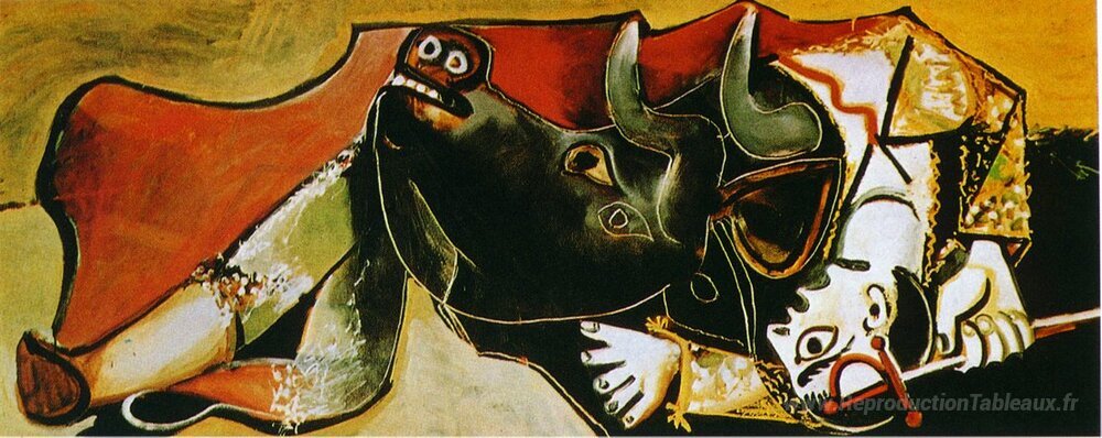 Nous vous proposons une reproduction artisanale sur toile du célèbre tableau 'Scène de corrida (le Torero est levé)' de Pablo Picasso, provenant du Musée de la Reproduction.