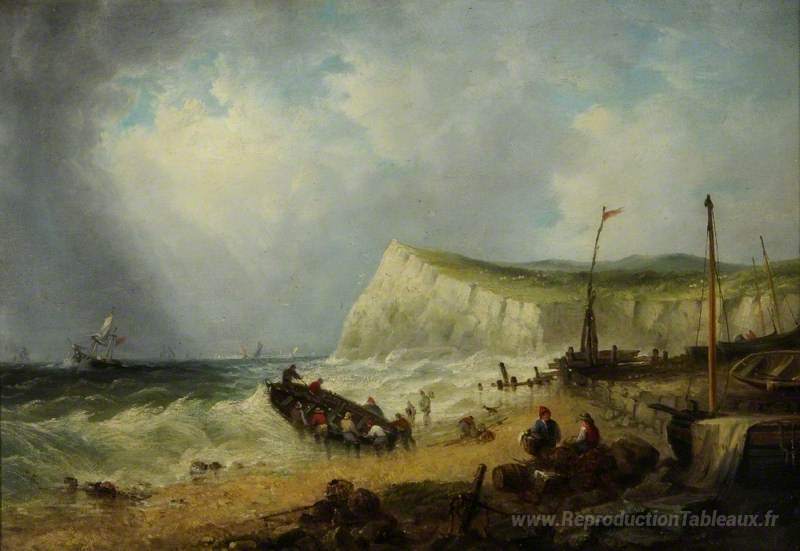 Nous vous proposons une reproduction artisanale sur toile du célèbre tableau 'Scène de la côte' de James Webb , provenant du Musée de la Reproduction.
