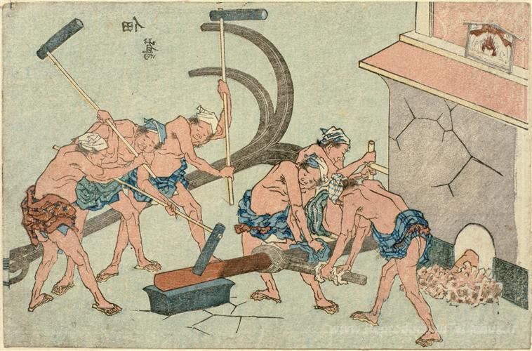 Nous vous proposons une reproduction artisanale sur toile du célèbre tableau 'Scènes de rue nouvellement puni' de Katsushika Hokusai, provenant du Musée de la Reproduction.