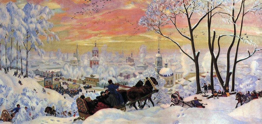 Nous vous proposons une reproduction artisanale sur toile du célèbre tableau 'Se basculer' de Boris Kustodiev, provenant du Musée de la Reproduction.
