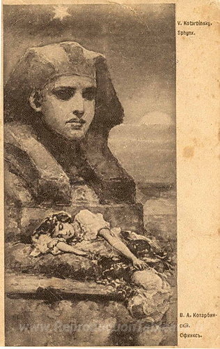 Nous vous proposons une reproduction artisanale sur toile du célèbre tableau 'Sfinge' de Wilhelm Kotarbinski, provenant du Musée de la Reproduction.