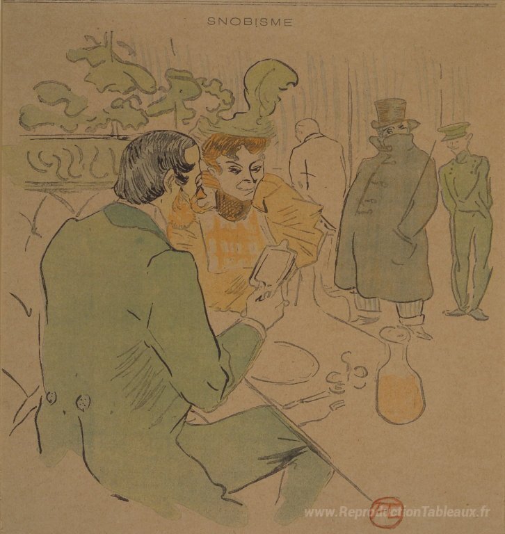Nous vous proposons une reproduction artisanale sur toile du célèbre tableau 'Snobisme' de Henri de Toulouse-Lautrec, provenant du Musée de la Reproduction.