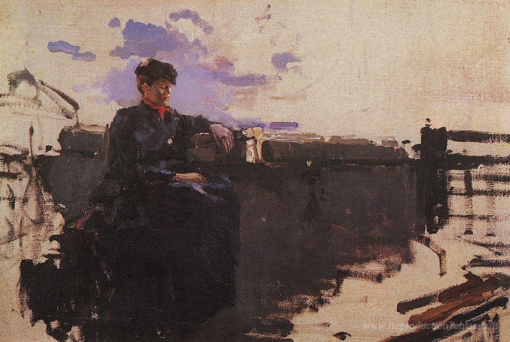 Nous vous proposons une reproduction artisanale sur toile du célèbre tableau 'Sur la route' de Konstantin Korovin, provenant du Musée de la Reproduction.