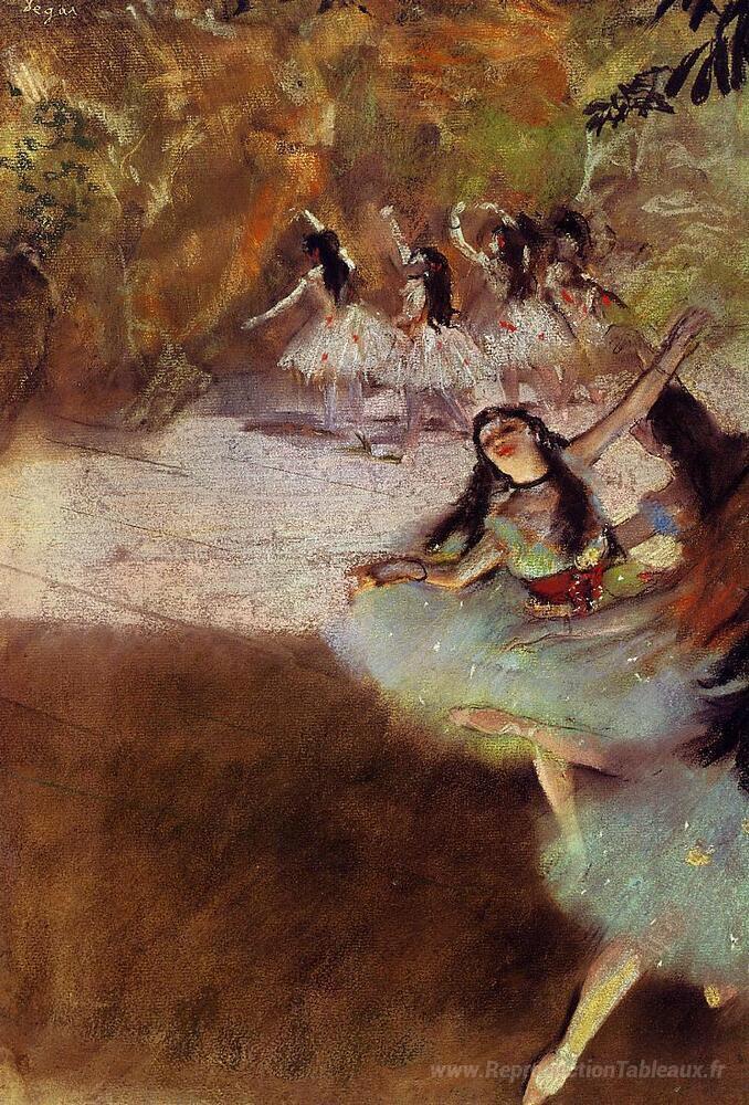 Nous vous proposons une reproduction artisanale sur toile du célèbre tableau 'Sur la scène' de Edgar Degas, provenant du Musée de la Reproduction.