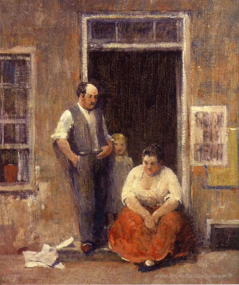 Nous vous proposons une reproduction artisanale sur toile du célèbre tableau 'Sur le quai' de Robert Spencer, provenant du Musée de la Reproduction.