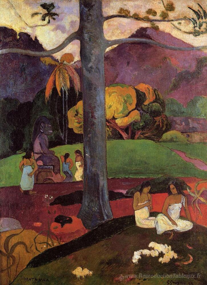 Nous vous proposons une reproduction artisanale sur toile du célèbre tableau 'Temps ancien' de Paul Gauguin, provenant du Musée de la Reproduction.