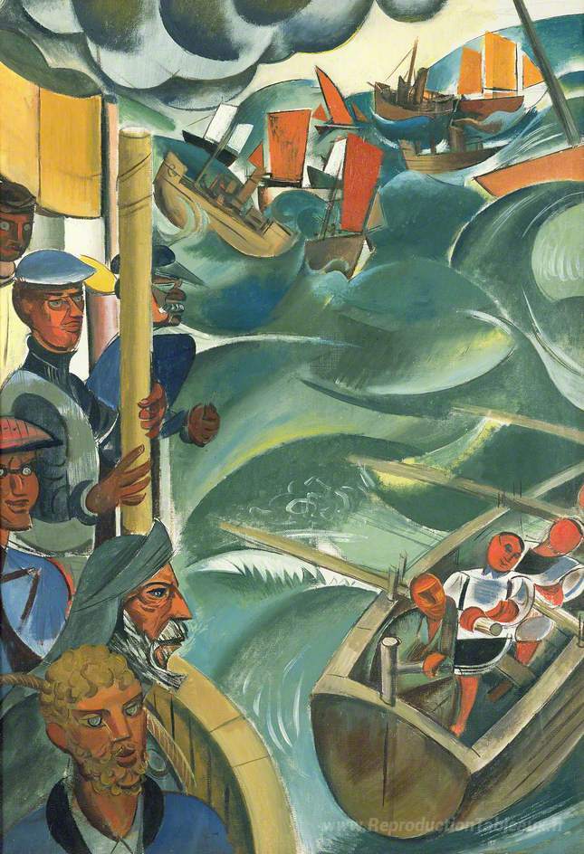 Nous vous proposons une reproduction artisanale sur toile du célèbre tableau 'Terre-Neuve' de Wyndham Lewis, provenant du Musée de la Reproduction.