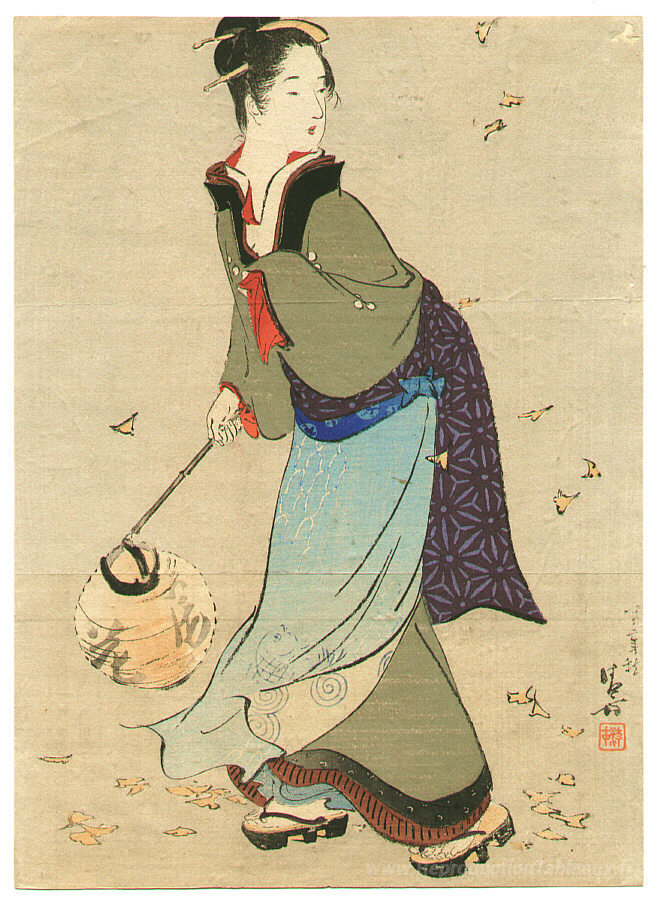 Nous vous proposons une reproduction artisanale sur toile du célèbre tableau 'titre inconnu' de Kiyokata Kaburagi, provenant du Musée de la Reproduction.