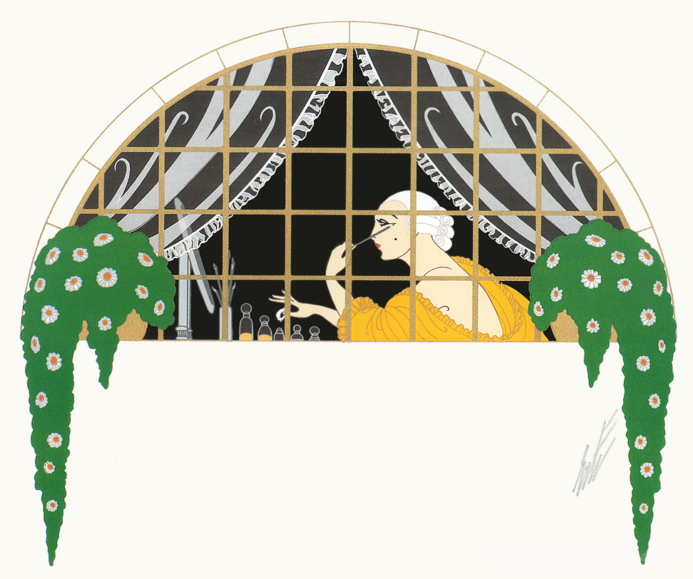 Nous vous proposons une reproduction artisanale sur toile du célèbre tableau 'Toilettes' de Erte, provenant du Musée de la Reproduction.