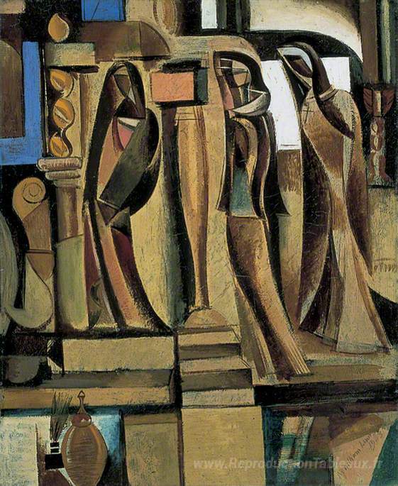 Nous vous proposons une reproduction artisanale sur toile du célèbre tableau 'Trois figures voilées' de Wyndham Lewis, provenant du Musée de la Reproduction.