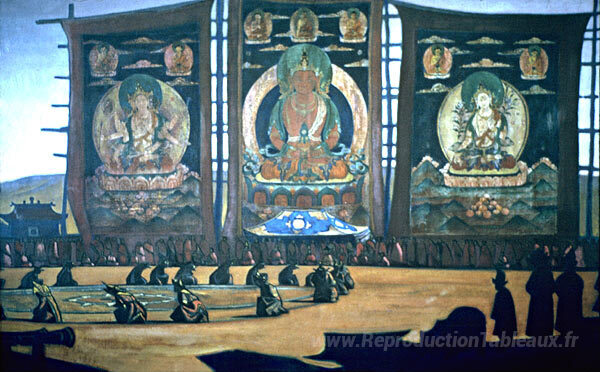 Nous vous proposons une reproduction artisanale sur toile du célèbre tableau 'Tsam mongol' de Nicholas Roerich, provenant du Musée de la Reproduction.