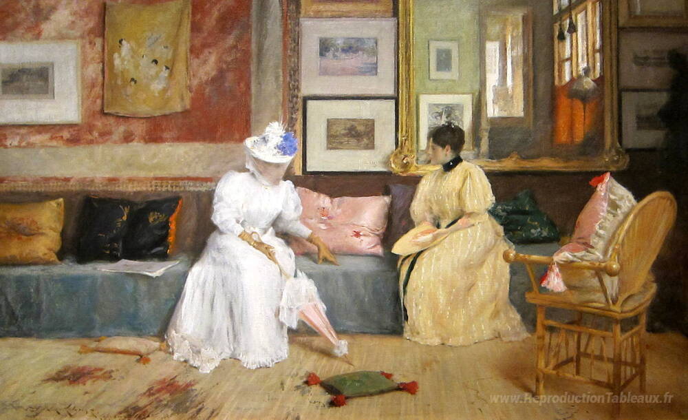 Nous vous proposons une reproduction artisanale sur toile du célèbre tableau 'Un appel amical' de William Merritt Chase, provenant du Musée de la Reproduction.