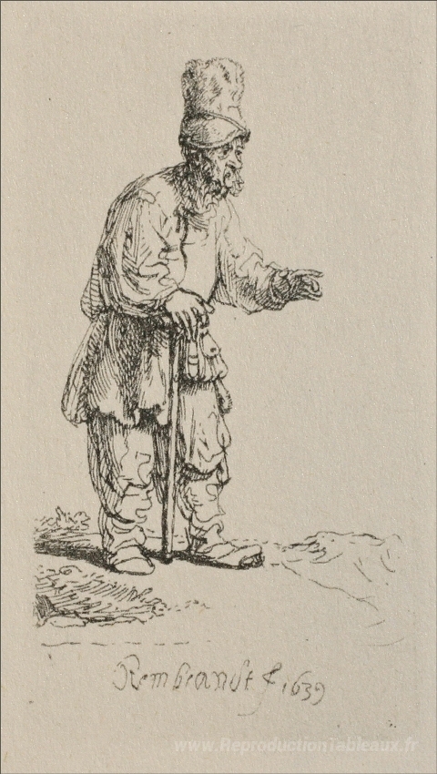 Nous vous proposons une reproduction artisanale sur toile du célèbre tableau 'Un juif avec le capuchon élevé' de Rembrandt, provenant du Musée de la Reproduction.
